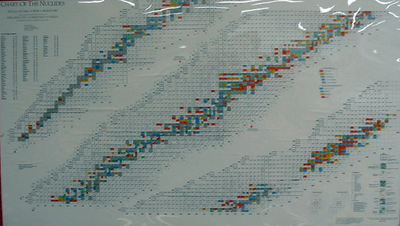 | There is also an online chart at: http://chemlab.pc.maricopa.edu/periodic/isotopes.html Clicking on a nuclide will bring up its mass and isotopic abundance if it is stable, and its half-life and decay modes if it is unstable. |