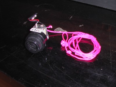 | 1) Connect the 9V battery (you should be able to hear the transducer) 2) Holding onto the string, swing the transducer. |