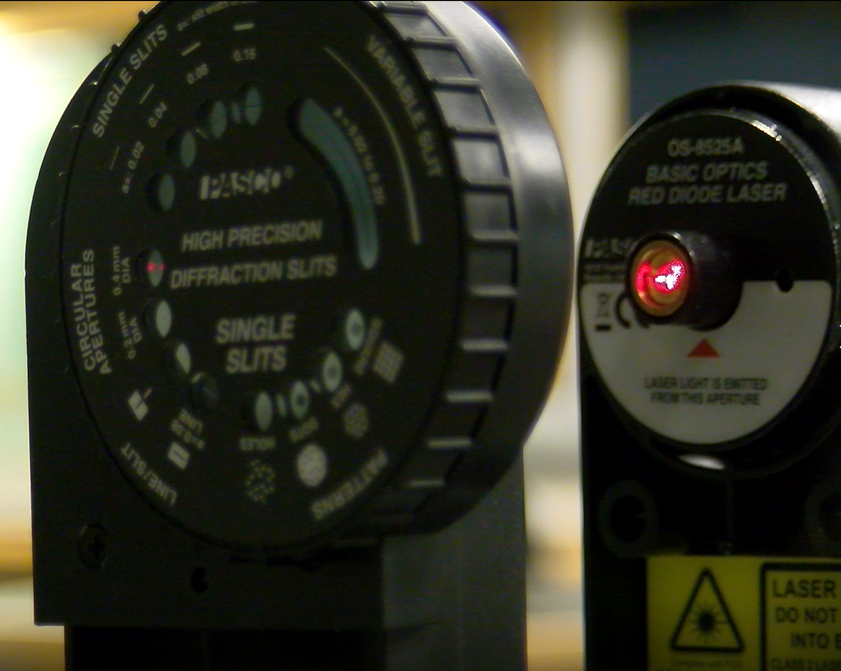 Use Pasco circular apertures, red laser, track to align the equipment. |