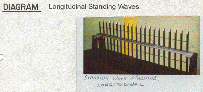 Info Longitudinal Standing Waves Type of activity: demo Activity code: W-006c Courses PHY100 PHY293 Apparatus Standing Wave Machine