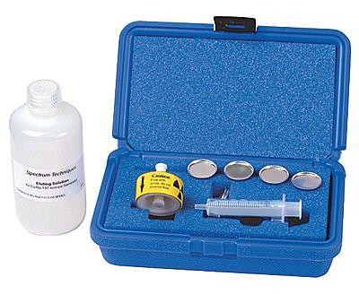 Place a sensor on (in contact with) the solution, and place another pointing away (for background). Use with the Pasco box and Data Studio (laptop).